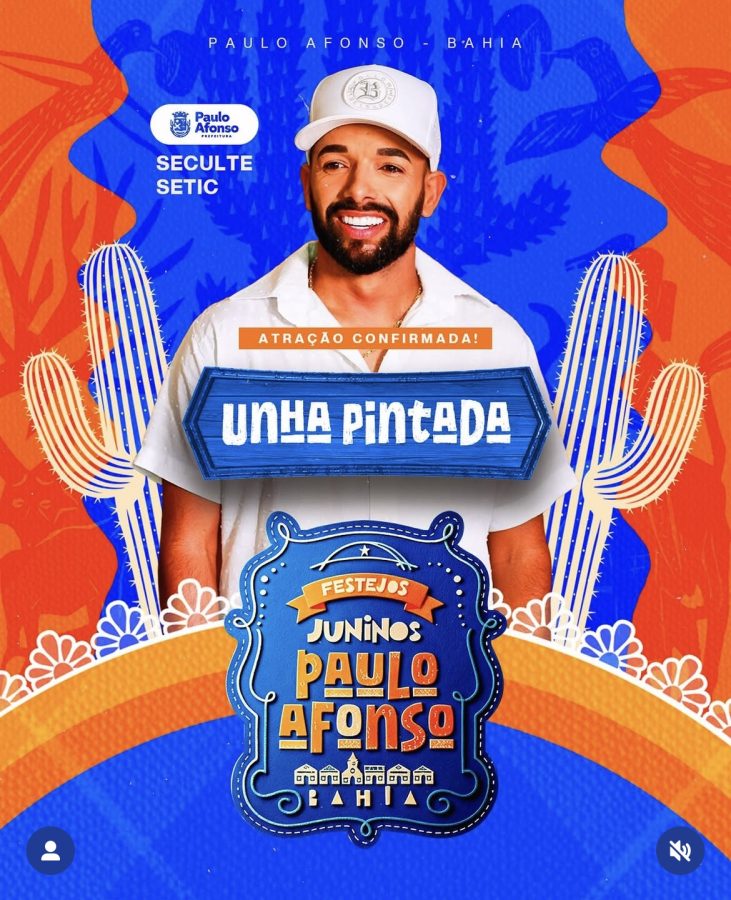 A Prefeitura de Paulo Afonso surpreendeu o público ao anunciar, na noite desta segunda-feira (12), mais uma grande atração dos Festejos Juninos 2025: o cantor Unha Pintada. O anúncio foi feito através do perfil oficial do município no Instagram, em tom bem-humorado, revelando que o “estagiário” teria “esquecido” de incluir o nome do artista no card oficial com a programação.