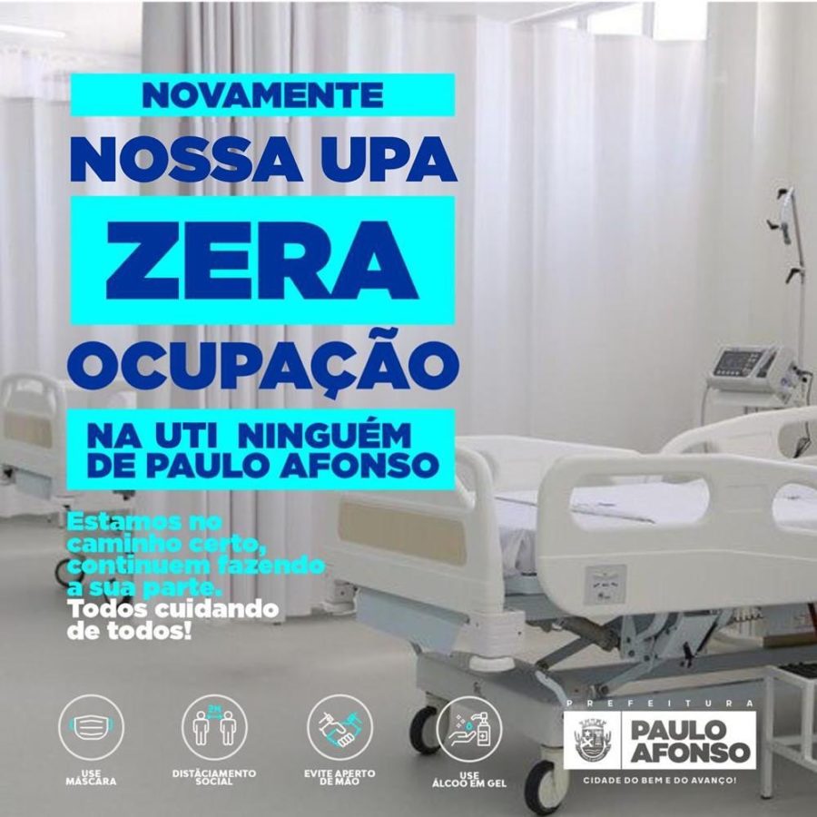 “Estamos vencendo! Nossa Upa Covid segue zerada e na UTI Covid do HMPA não tem nenhum paciente de Paulo Afonso! São dias de grandes expectativas, mas temos que nos manter antenados! A pandemia ainda não acabou, apesar dos números positivos! Vamos nos cuidar e cuidar de quem amamos!❤️🙏🏽”, informou a Secretaria Municipal de Saúde.