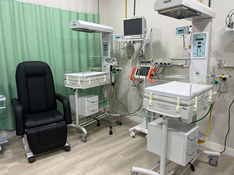 “O local é composto por incubadoras aquecidas, incubadoras de transportes, monitores cardíacos, ventiladores mecânicos, bomba de infusão, aparelho para ECG (eletrocardiograma), aparelho para ultrassom, aparelho de Raio X, ventilador mecânico portátil, cardioversor, berço aquecido, balança neonatal, aspirador, poltronas para as mães, berços de acrílicos, carro de emergência, carro para medicamentos e armários. Os equipamentos foram adquiridos por meio do Governo do Estado.”
