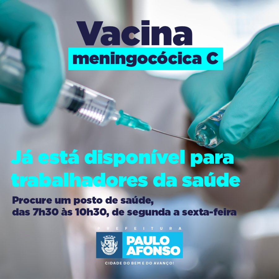 A Secretaria de Saúde alerta aos profissionais da área que está disponível a vacina meningocócica C. A equipe reforça que os trabalhadores devem procurar os postos de saúde das 7h30 às 10h30, de segunda a sexta-feira.