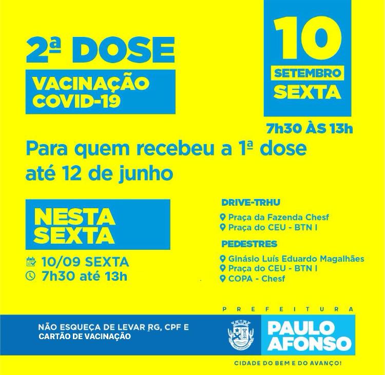 A 2ª dose da Astrazeneca Fiocruz/Oxford para quem tomou a 1ª até 12 de junho acontece nesta sexta-feira (10). A Secretaria de Saúde reforça a importância da população comparecer e completar o ciclo, uma vez que a procura nesta quarta-feira (8), também da Astrazeneca para quem tomou a 1ª dose até 11 de junho, foi baixa.
