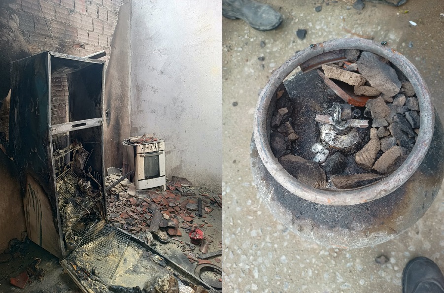 De acordo com a solicitante, o incêndio foi causado por um vazamento de gás proveniente do botijão. Apesar do susto, não houve registro de vítimas.