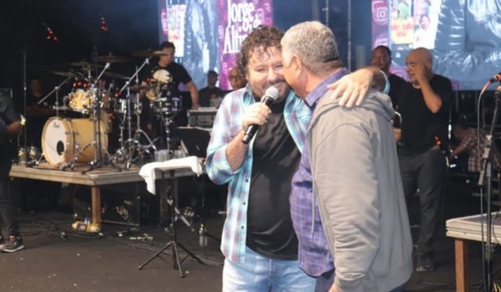 O prefeito em exercício Marcondes Francisco subiu ao palco em dois momentos da festa. O gestor recebeu homenagens dos cantores Luanderson e Jorge de Altinho.
