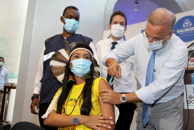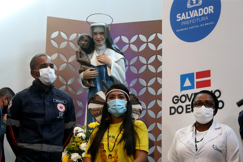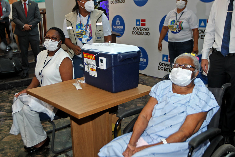 Uma enfermeira de 53 anos, uma idosa de 83, um médico de 30, todos negros, e uma índia do povo Tuxá de 31 anos foram as quatro primeiras pessoas a serem vacinadas contra a Covid-19, na Bahia. O governador Rui Costa acompanhou a imunização histórica, que aconteceu na sede das Obras Sociais Irmã Dulce (Osid), em Salvador, na manhã desta terça-feira (19).