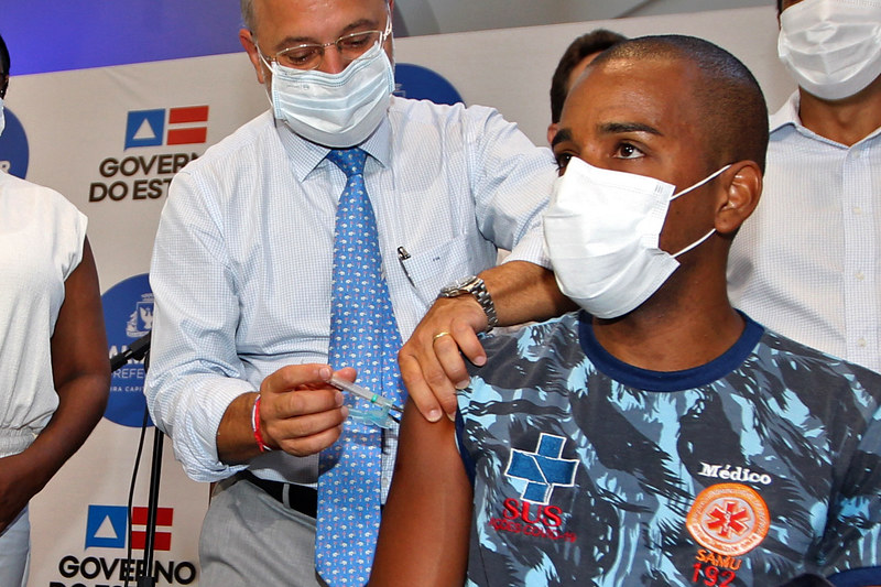 A enfermeira Maria Angélica de Carvalho Sobrinha, que atua no Instituto Couto Maia; o médico Uenderson Barbosa, no Serviço de Atendimento Móvel de Urgência (Samu); a índia Deisiane Tuxá e dona Lícia Pereira Santos, idosa que mora, desde 2014, no Centro de Geriatria das Osid, foram as pessoas escolhidas para receber doses dos imunizantes desenvolvidos pelo Instituto Butantã, em parceria com a chinesa Sinovac Biotech.