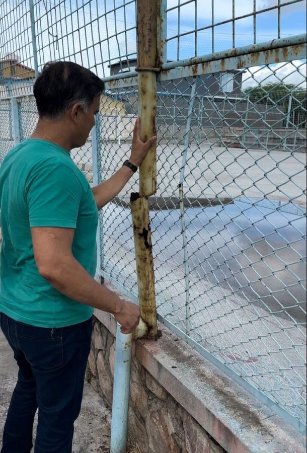 Além disso, o descaso da gestão municipal se manifesta também na área urbanas, com ruas esburacadas e quadras esportivas em condições deploráveis.