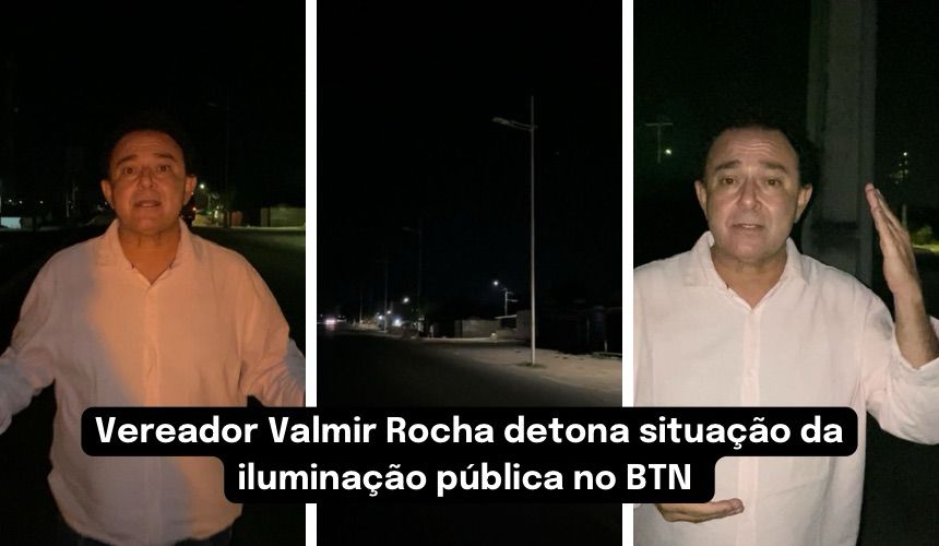 O vereador Valmir Rocha não poupou palavras ao criticar a situação da iluminação pública, em especial no BTN, seu reduto eleitoral. Em uma série de publicações em suas redes sociais mostrou vários pontos do bairro às escuras. Ao lado de moradores da rua Padre Lourenço ele diz ter apresentado inúmeros ofícios, mas que não tem sido atendido.