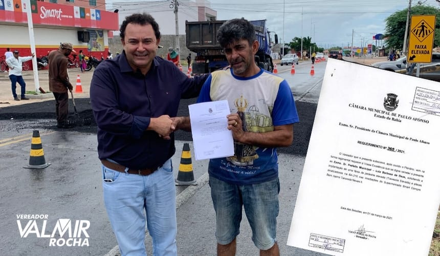 “Essa é uma pequena obra que trará um grande impacto social para toda comunidade. A Faixa Elevada trará segurança e evitará acidentes envolvendo pedestres”. Relatou o vereador Valmir Rocha em visita para vistoriar a obra.