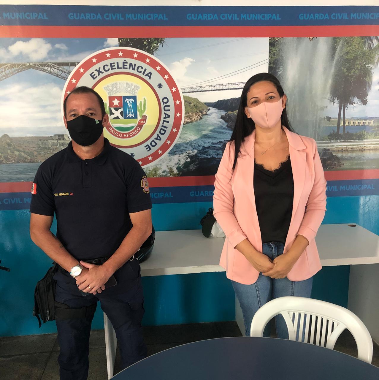 Inspetor Andrade de Oliveira, comandante da GCM e a vereadora Evinha Oliveira. Foto: Assessoria Parlamentar