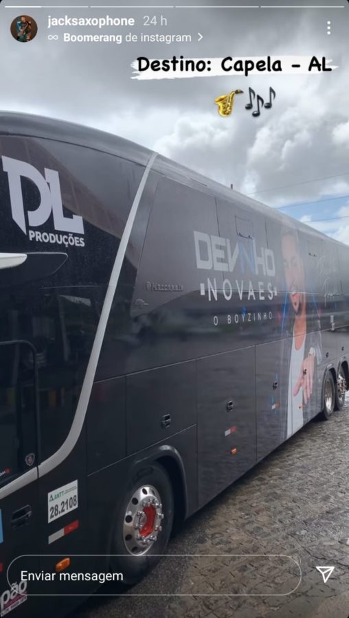 Horas antes do acidente, Jheck Sax postou foto dele e do ônibus da banda em seu perfil nas redes sociais — Foto: Reprodução/Instagram. Veja abaixo: