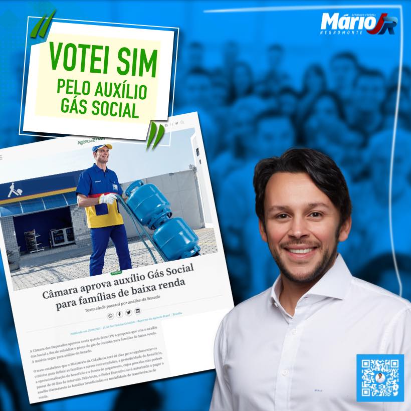 Com voto do deputado federal Mário Negromonte Júnior (PP), a Câmara dos Deputados aprovou nesta quarta-feira (29) a proposta que cria o auxílio Gás Social a fim de subsidiar o preço do gás de cozinha para famílias de baixa renda. A matéria segue para análise do Senado.